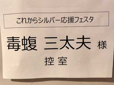 墨田区の『これからシルバー応援フェスタ』というイベントで『マムシ流こころとからだの健康法』ということで、いつも通り、上顎と下顎がぶつかるままにいろいろ好き勝手にしゃべってきたぞ。