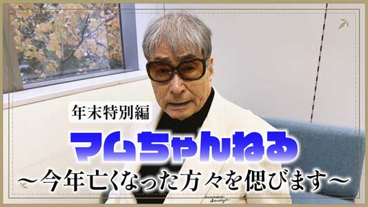 12月の『マムちゃんねる』はオレの一人語りで、今年、鬼籍に入った方々を偲んだぞ。オレにとっては、何と言ってもミスター・長嶋茂雄さんの逝去と、俳優・仲代達矢さんの逝去というのが悲しいな。お二人の話を中心にしながら、いろいろ喋ってるから、ぜひ見てくれよ。そして、読者諸君もご自分の周囲の亡くなられた方たちに思いを馳せてくれ、合掌。